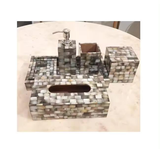 Decorative Mother Pearl Mop Five-Piece Bathroom Set High Quality Luxury Classic Stylish New Design Customizable Options Stocked