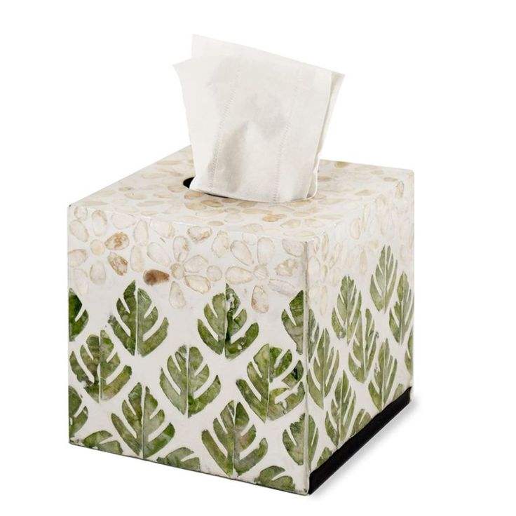 Decorative Mother of Pearl Inlay Square Tissue Box Decorative Napkin Dispenser Organizer for Home and Office Bathroom Decor