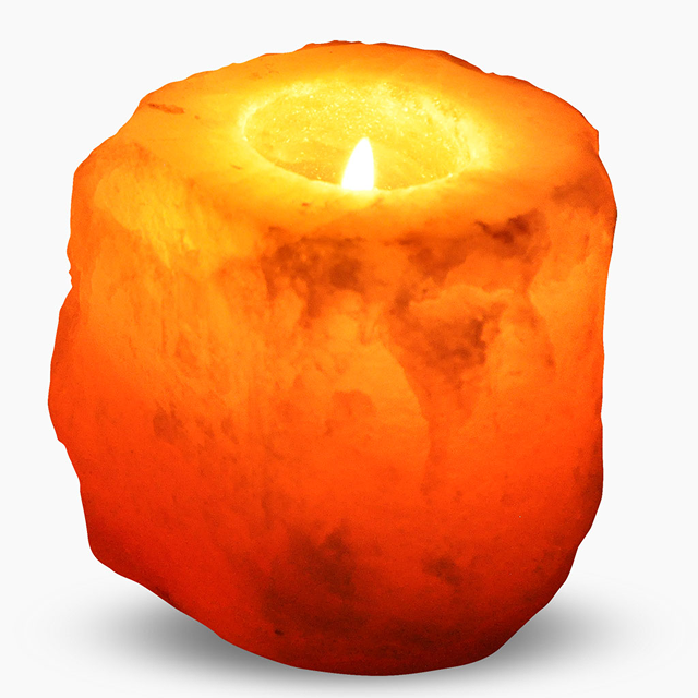 Decorative Natural Shape Himalayan Salt Candle Handmade Rock Crystal Holder for Warm Glow