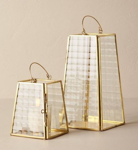 Decorative New Design Handcrafted Mild Steel Set of 2 Lantern with Gold Finished Used for Festive Decor Indoor Lighting Home Dec