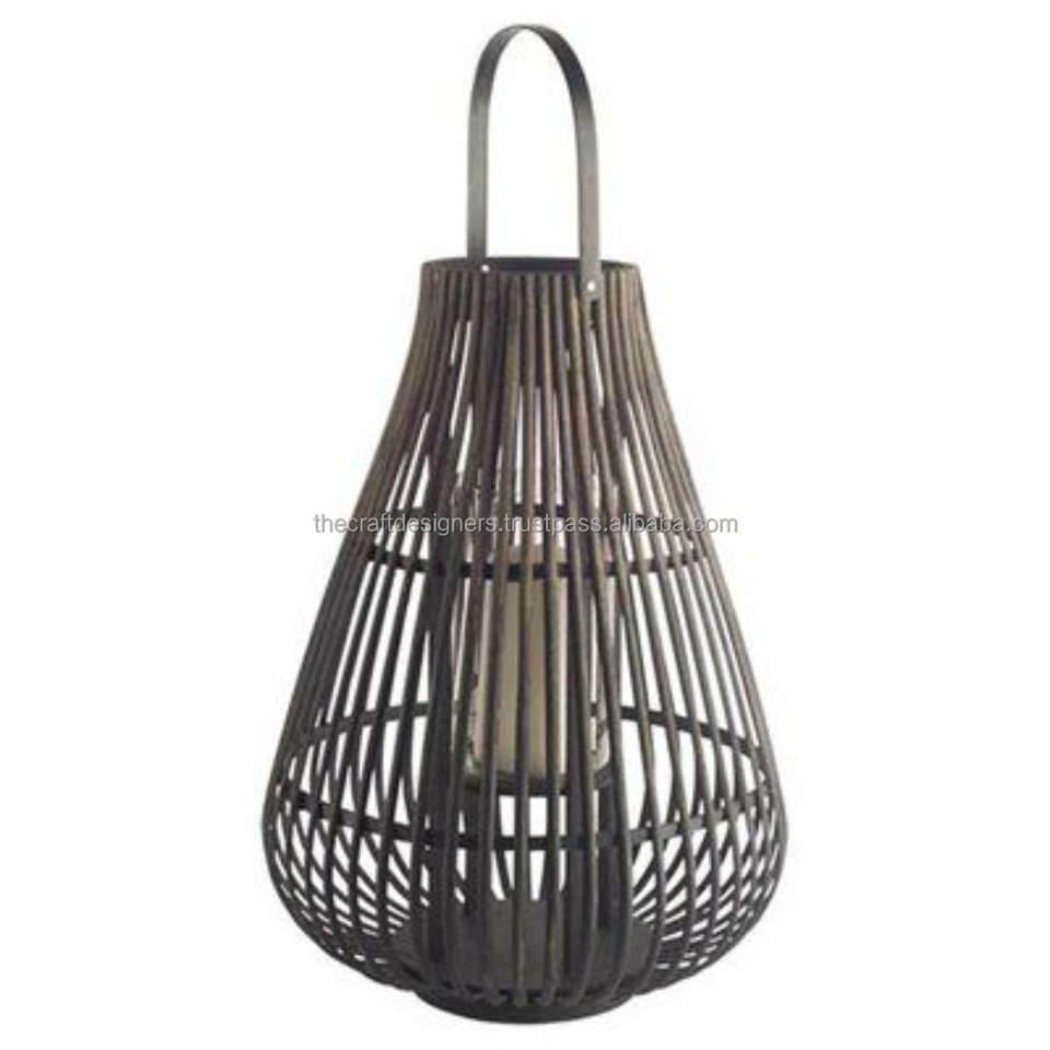 Decorative Pillar Candle Holder Black Coated Finished Iron Wire Candle Holder With Rope Handle Balcony Garden Hanging Lantern