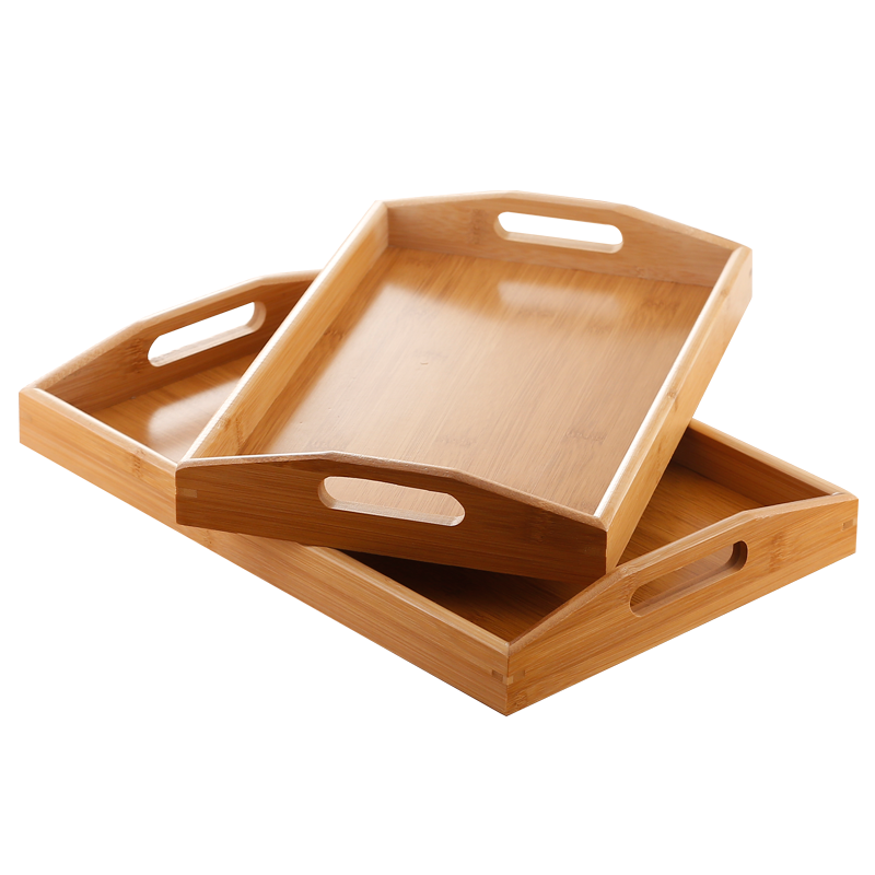 Decorative Rectangular Wood Breakfast Dinner Food Couch Party Platters Natural Bamboo Serving Tray for Kitchen Eating Snacks