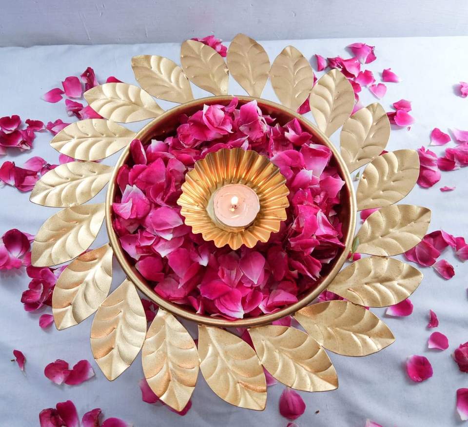 Decorative Round Metal Urli Candle Bowl Traditional Floating Candle Flower Urli