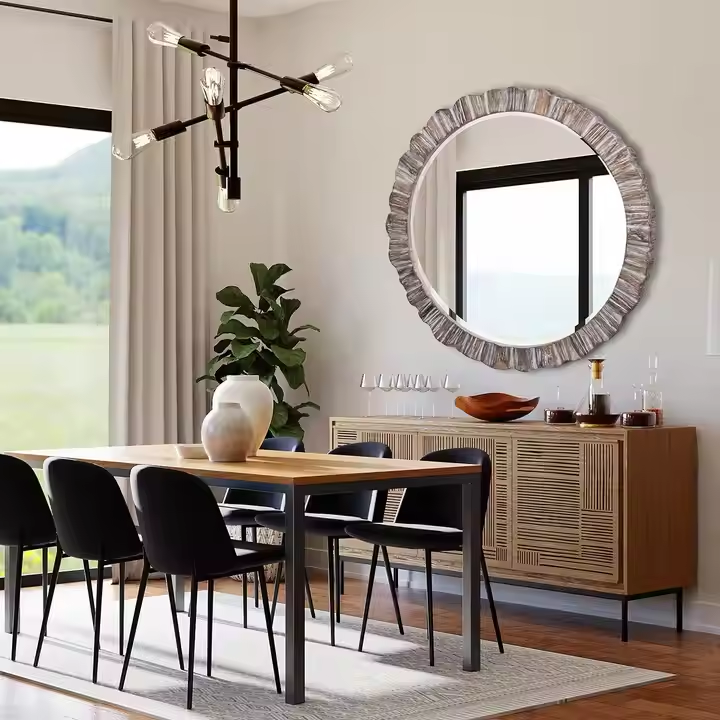 Decorative Round Wooden Wall Mirror Indian Manufacture Square Mango Wood Framed Brown Circle Mirror for Bathroom