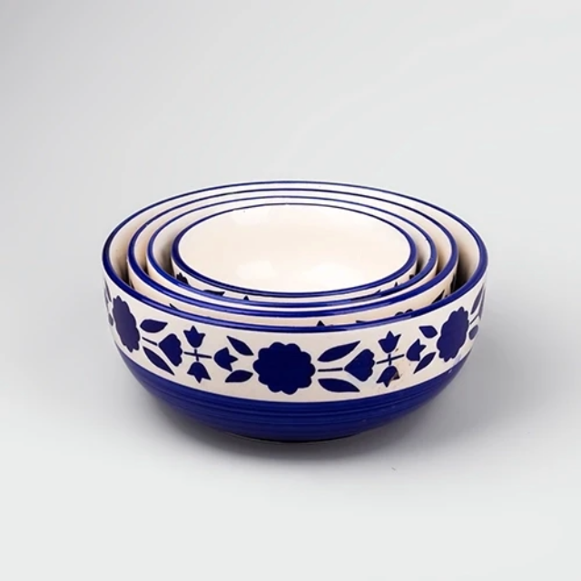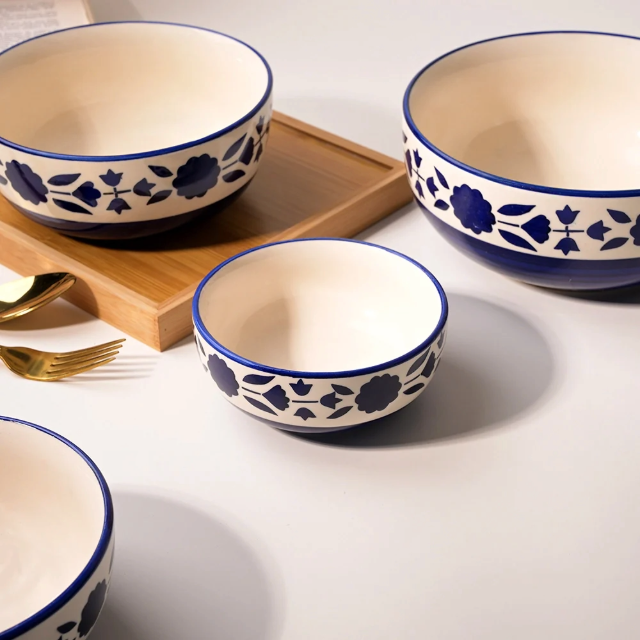 Decorative Royal Blue Bloom Bowls Set of 4 Fine Ceramic Tableware for Dining Wholesale for Best Price