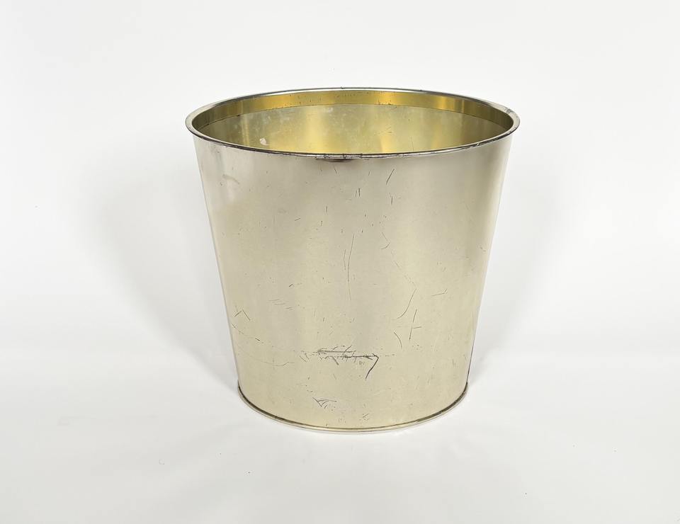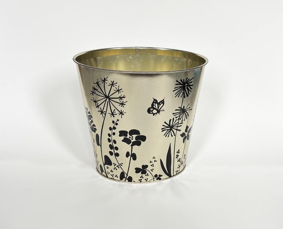 Decorative Silver Finished Metal Waste Bin with Black Print Design Perfect for Modern Interior and Home Organization Use