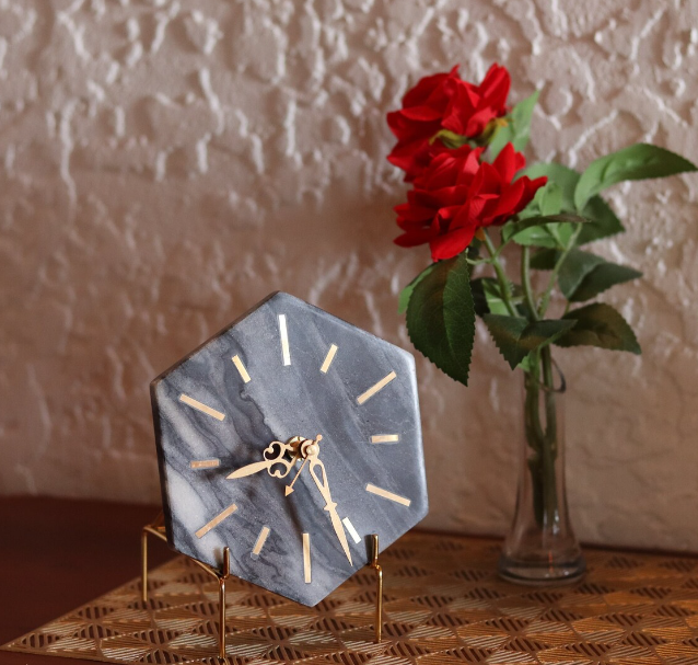 Product name:Hexagon Marble brass black Wall/Desk Clock