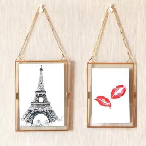 Decorative Style Metal Glass Photo Frame Hanging Wall Picture Display Frame Elegant Interior Decor