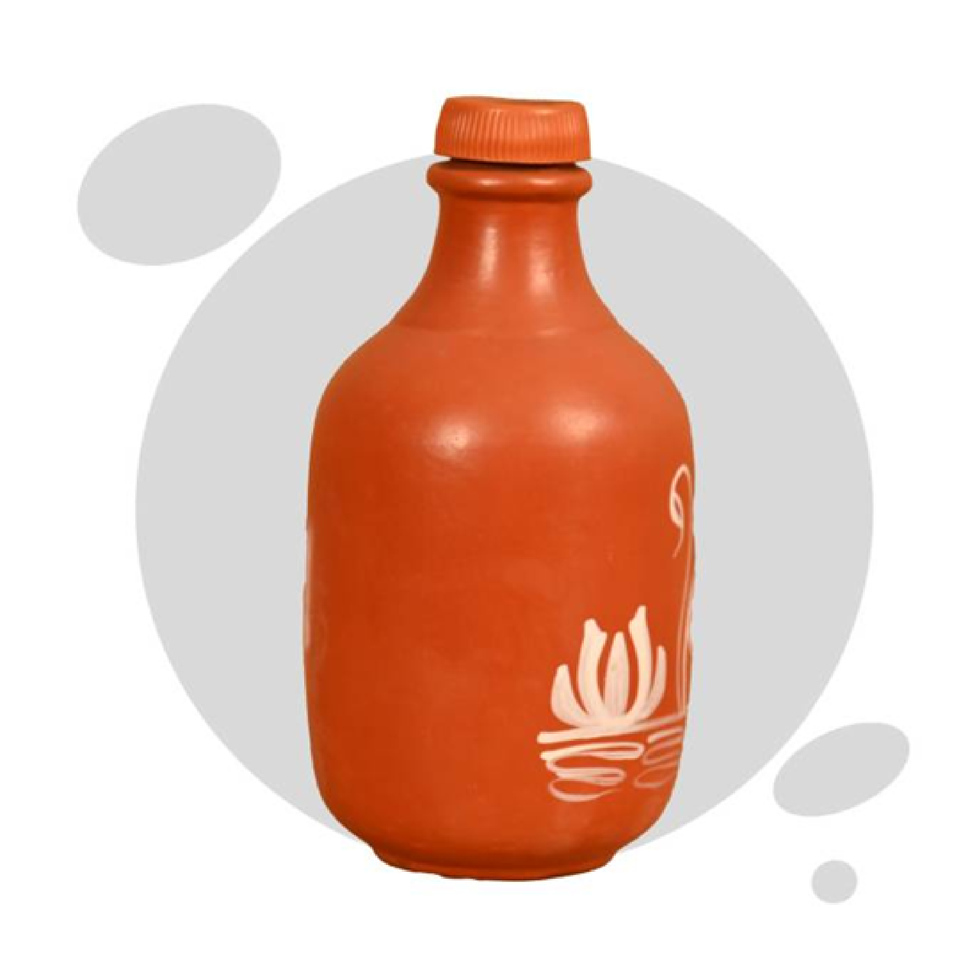 Decorative Terracotta Water Bottle with Hand-Painted White Floral and Leaf Design - Unique Clay Bottle with Nature-Inspired Art