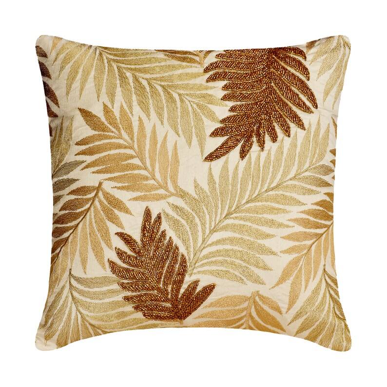 Decorative Throw Pillow Cover 16"x16" Gold & Beige Embroidered Sofa Pillow Cover with Beaded Embroidery Modern Home Decor