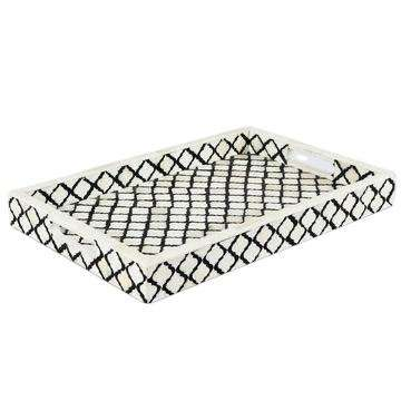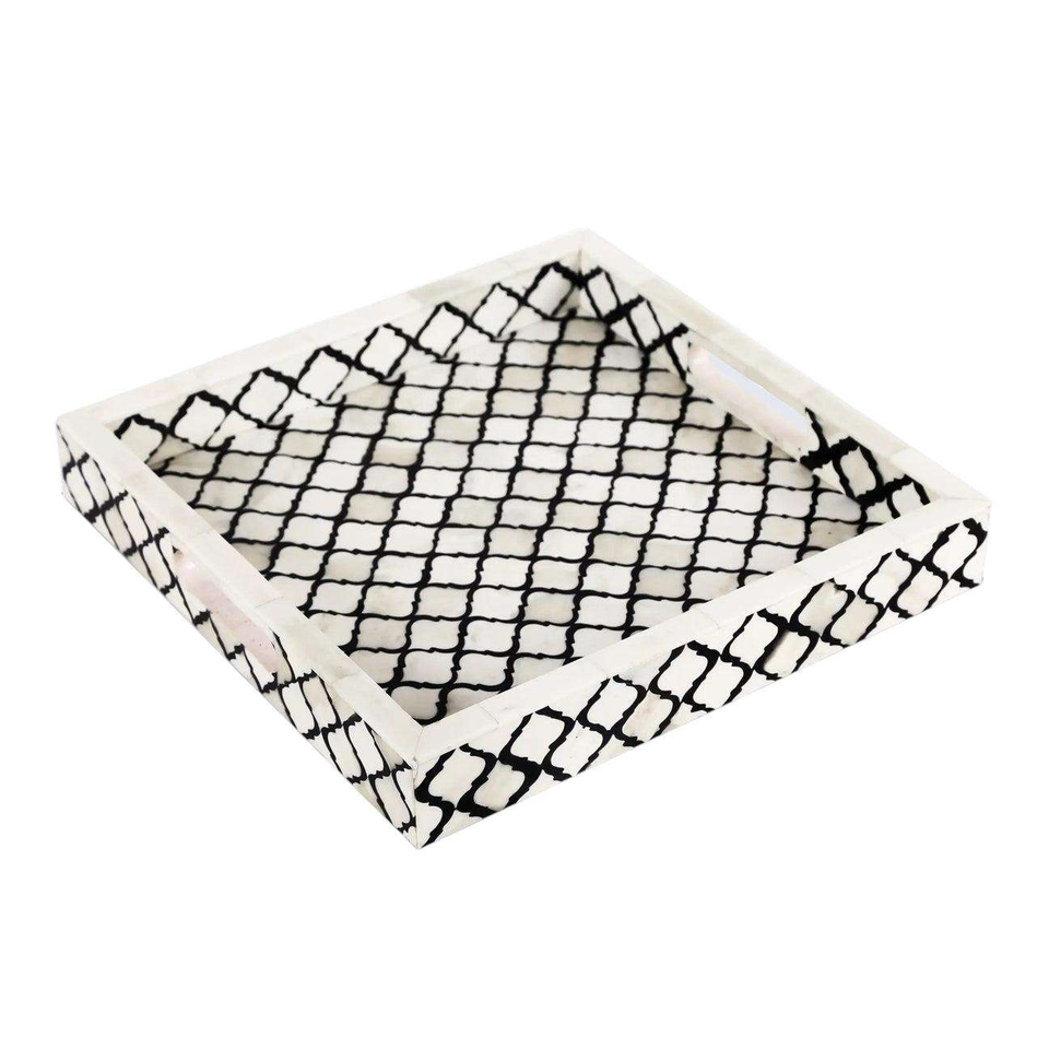 Decorative Tray Moroccan Patter Black & White Standard Quality Bone Inlay Serving Tray Tea Serving Tray by crescent crafts