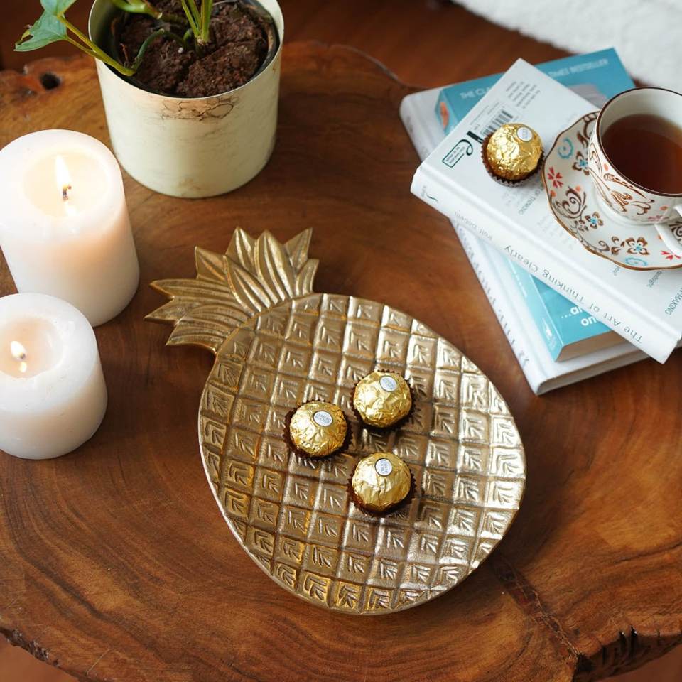 Decorative Trays Pineapple Metal Tray Gold Stylish Home Decor Centerpiece Modern Handmade Elegant Durable Tabletop