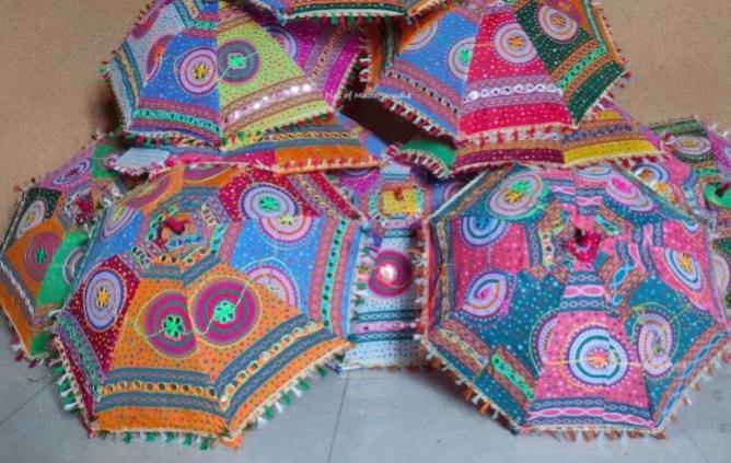 Keywords:Embroidered Umbrella, Parasol, Backdrop Decoration, Rajasthani