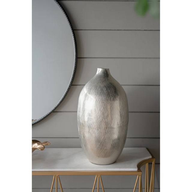 Decorative Vase Aluminum Silver Streaks Indoor Outdoor Home Decor Tabletop Living Room Silver Decoration