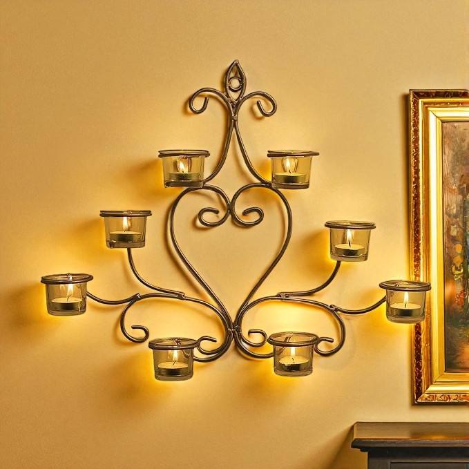 Decorative Wall Mounted Iron Candle Sconce With Artistic Pattern Suitable For Bedroom Living Room And Hallway Decor