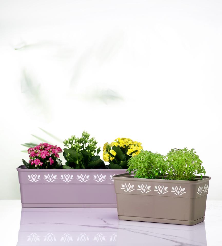 Decorative Window Box Planters for Indoor Outdoor Gardening Durable PP Plastic Flower Containers Large Floral Design WHOLESALE