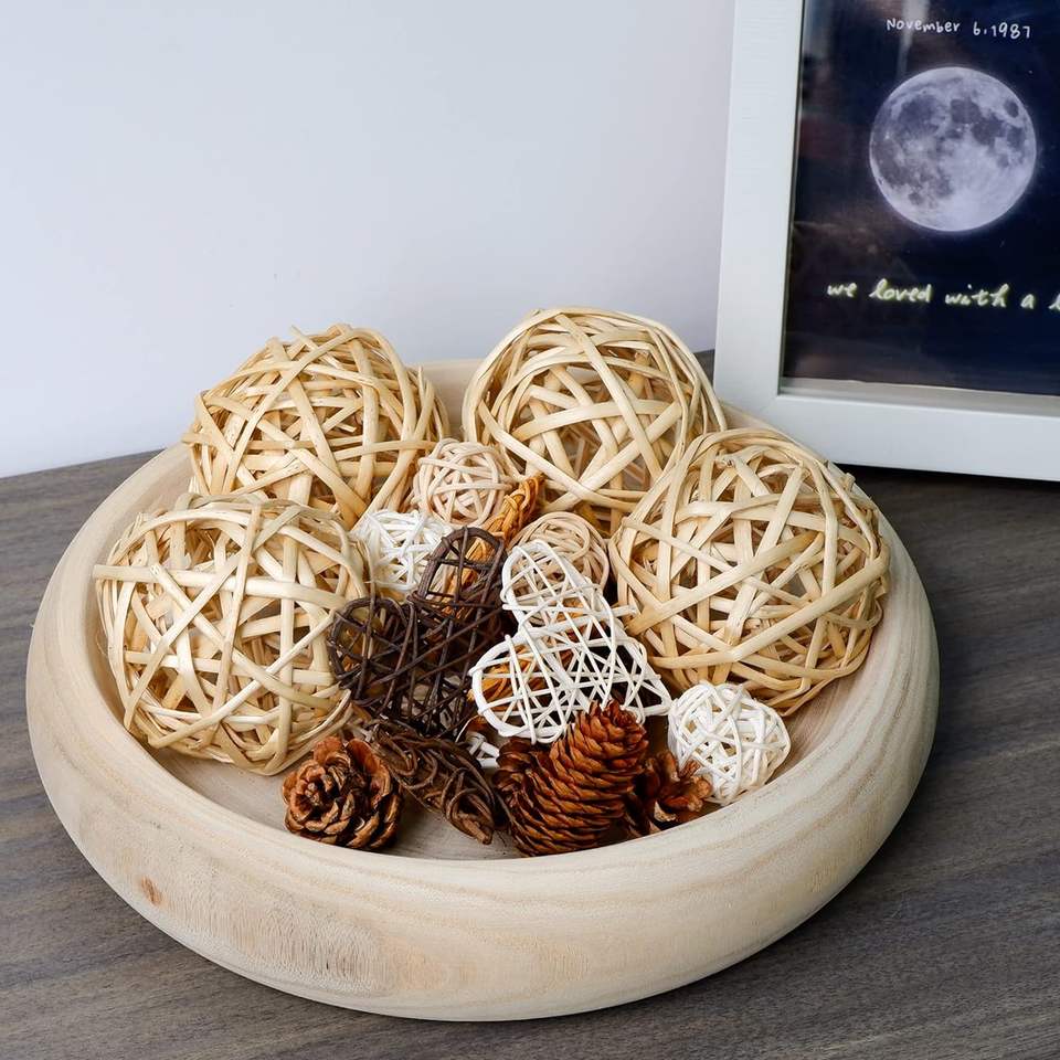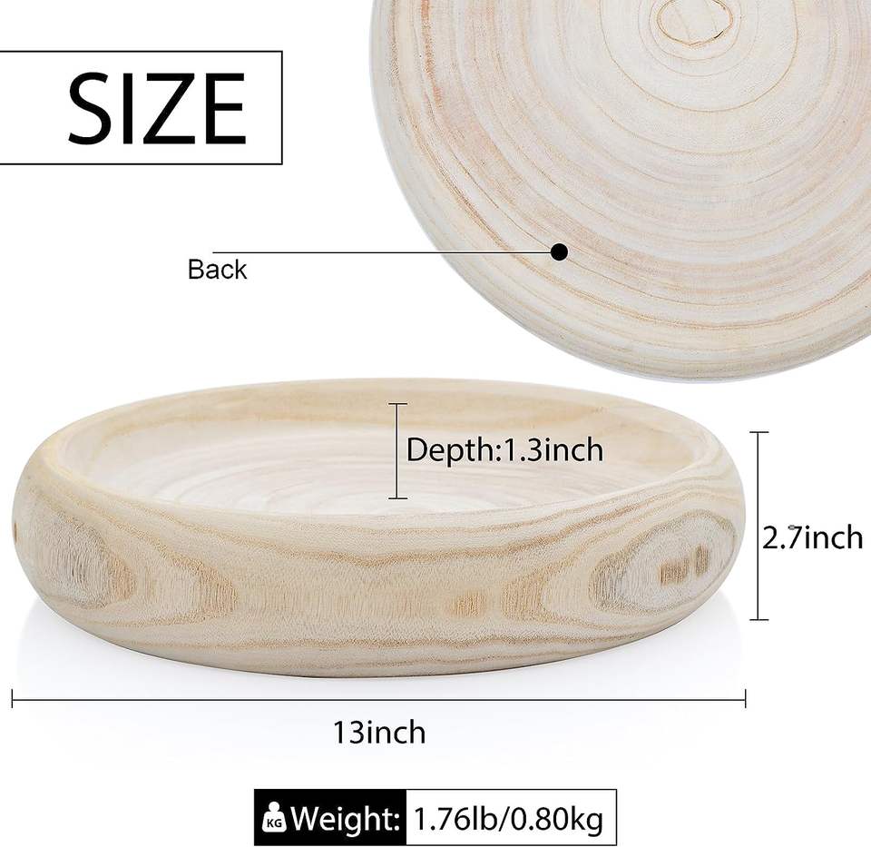 Decorative Wood Bowl, Wooden Dough Bowl of Paulownia Wood, Round Wood Bowls for Home Decor, Rustic Handmade Wooden Bowl