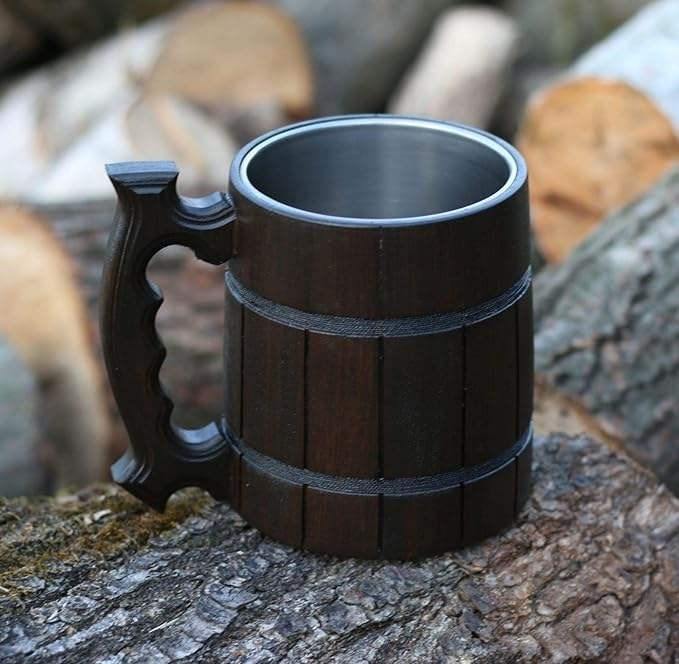 Decorative Wooden Mug With Hand Carved Floral Design And Glossy Finish For Hot And Cold Beverages At Affordable Price