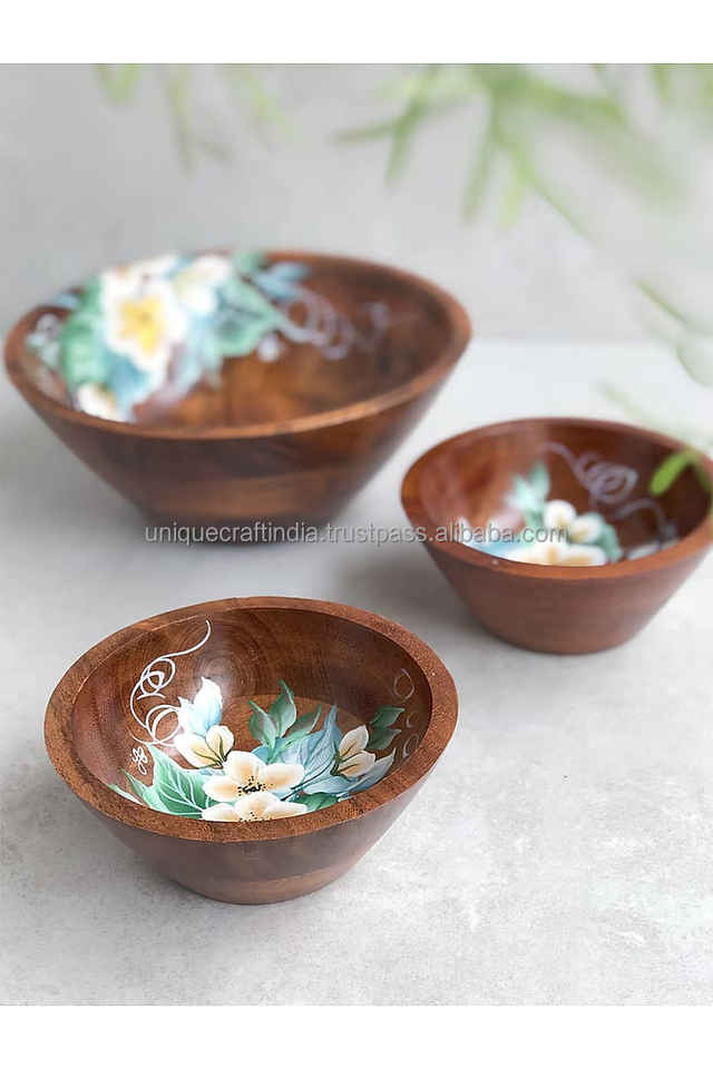 Decorative Wooden Salad Serving Bowl Customized Eco-Friendly Custom Size Wholesale Manufacturer New Design Hand Finished