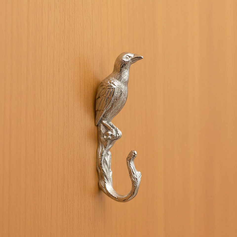 Decorative bird shape wall hook in polished silver finish modern animal coat hanger for home entryway bedroom decor