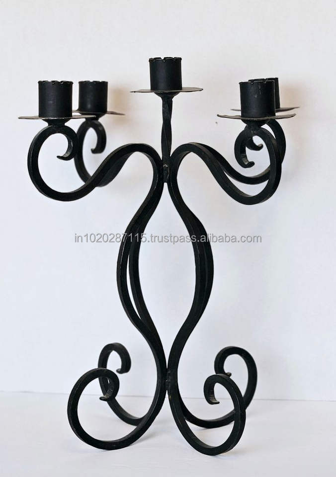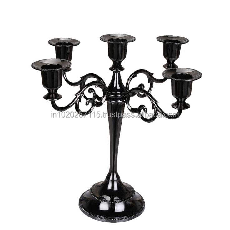 Decorative black wrought iron candelabra with unique detailing to enhance vintage home decor or formal dining spaces
