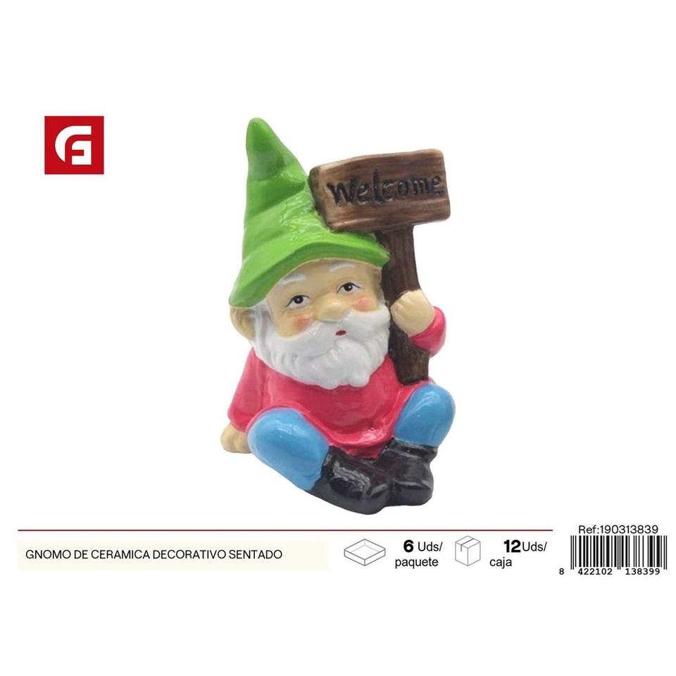 Decorative ceramic gnome sitting for the garden