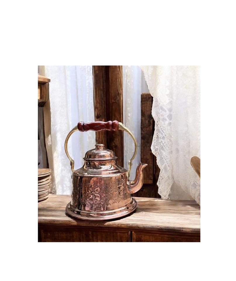 Decorative copper kettle for tea boiling and serving with handmade vintage design perfect for traditional homes and collectors