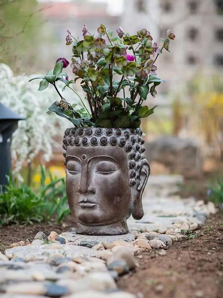 Decorative fiberglass mold garden landscape mold Buddha head flower pot Buddha head decorative piece flower pot mold