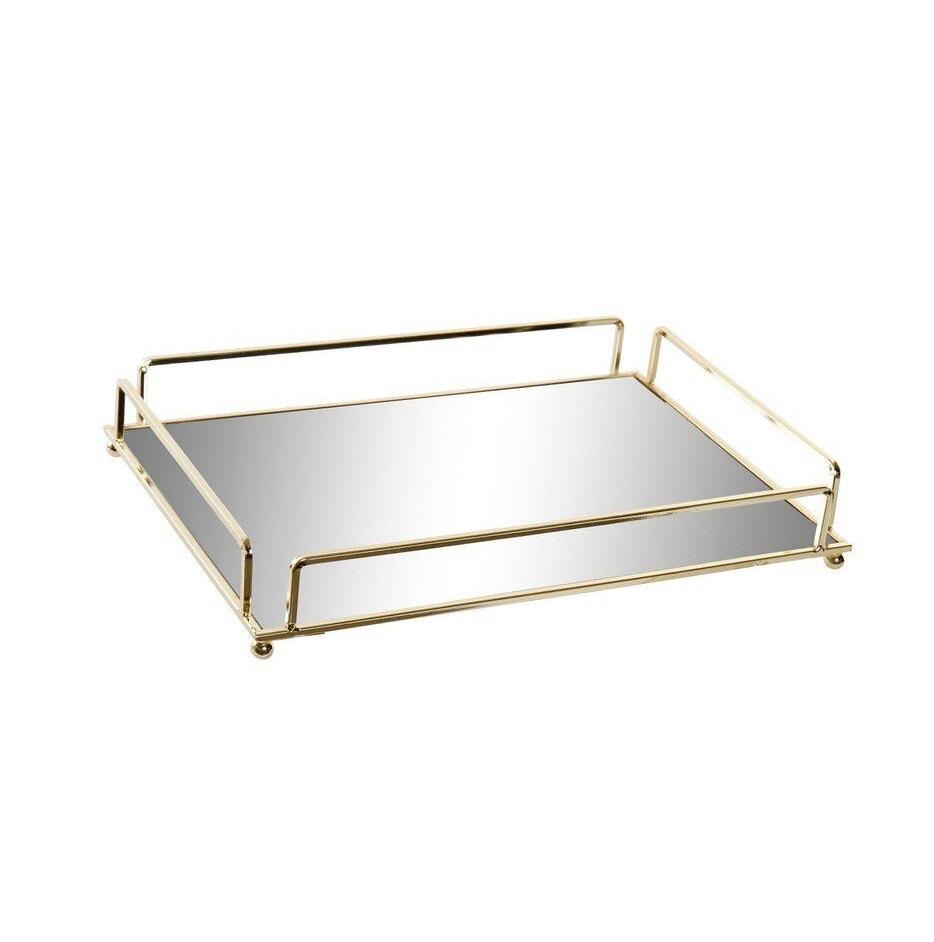 Decorative gold rim metal mirrored tray for living room table vanity and bathroom use with refined elegant craftsmanship