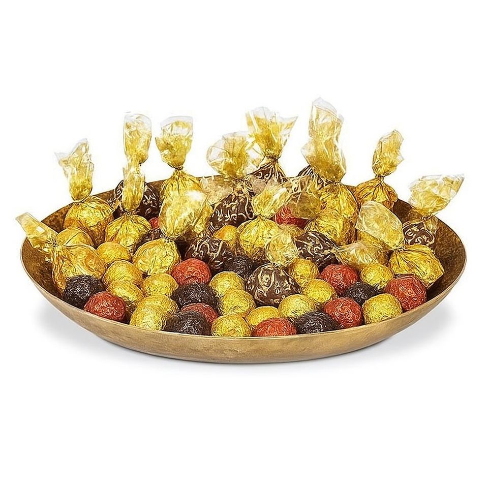 Decorative metal chocolate serving tray gold finished perfect for presenting sweets, delicacies, and delights at any event