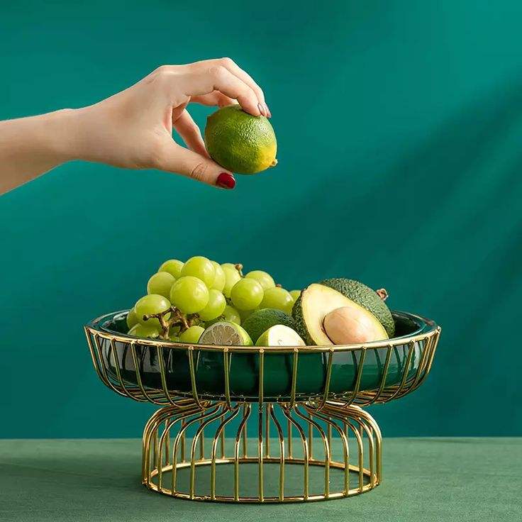 Decorative metal fruits basket with intricate wire detailing ideal for minimalist kitchen and modern storage ideas