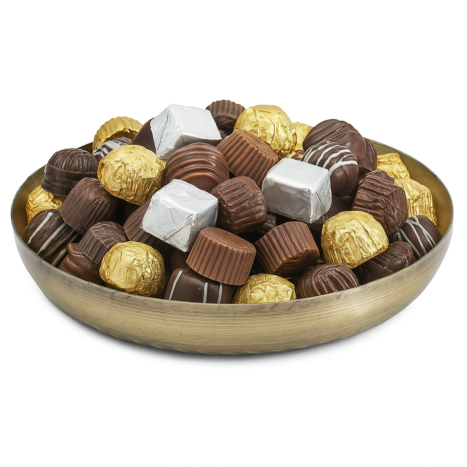Decorative metal serving tray made to impress, ideal for serving delightful sweets, artisanal chocolates, and more