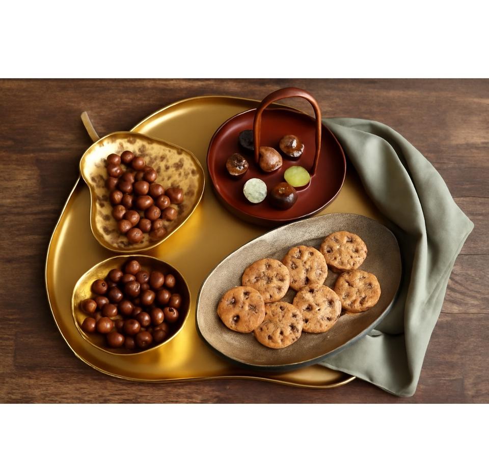 Decorative metal serving tray perfect for presenting chocolates and traditional sweets with elegance and festive flair