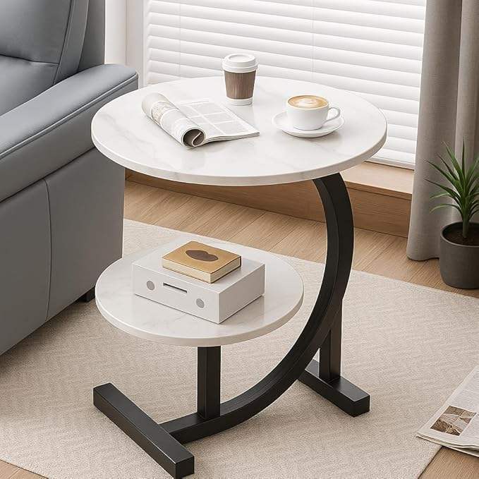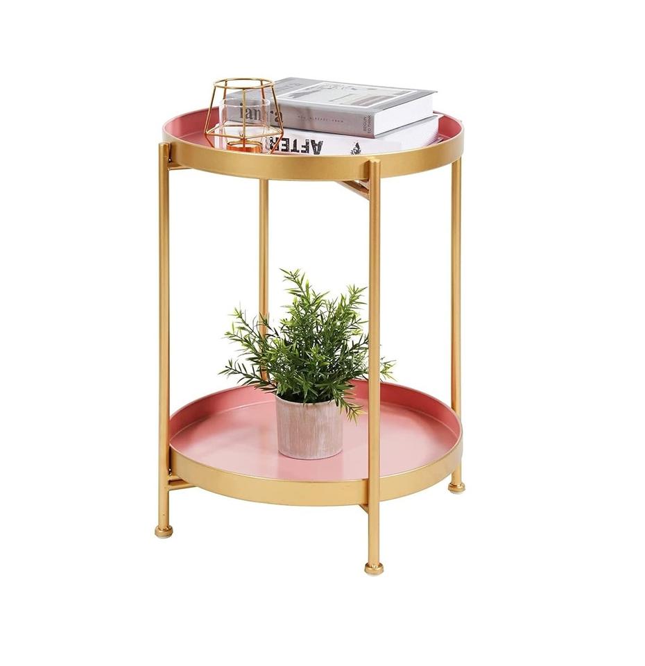 Decorative metal side table with wooden top perfect for displaying plants candles or photo frames stylishly