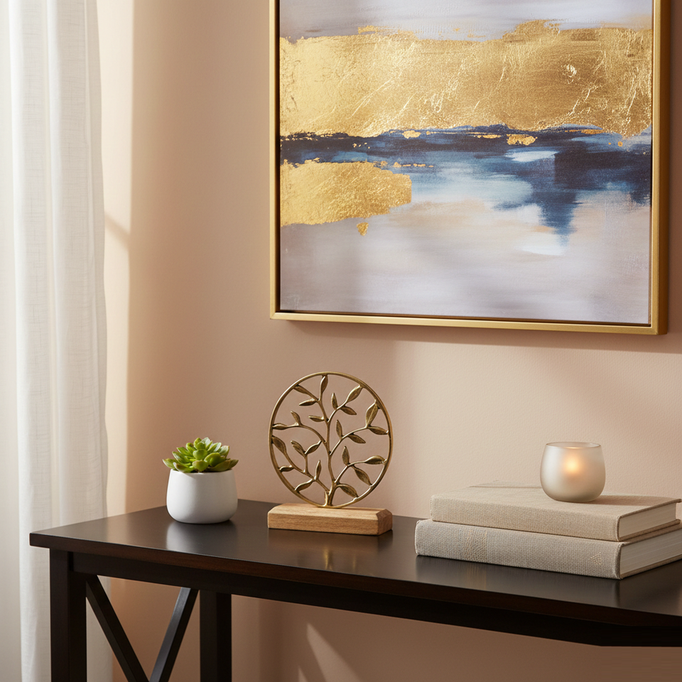 Decorative metal tree art sculpture with wooden base elegant modern home decor showpiece for living room office