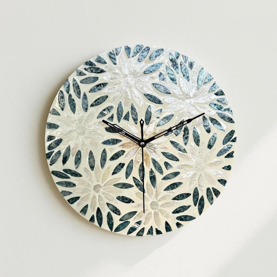 Decorative mother of pearl clock with mosaic pattern large shell inlaid wall clocks home accent