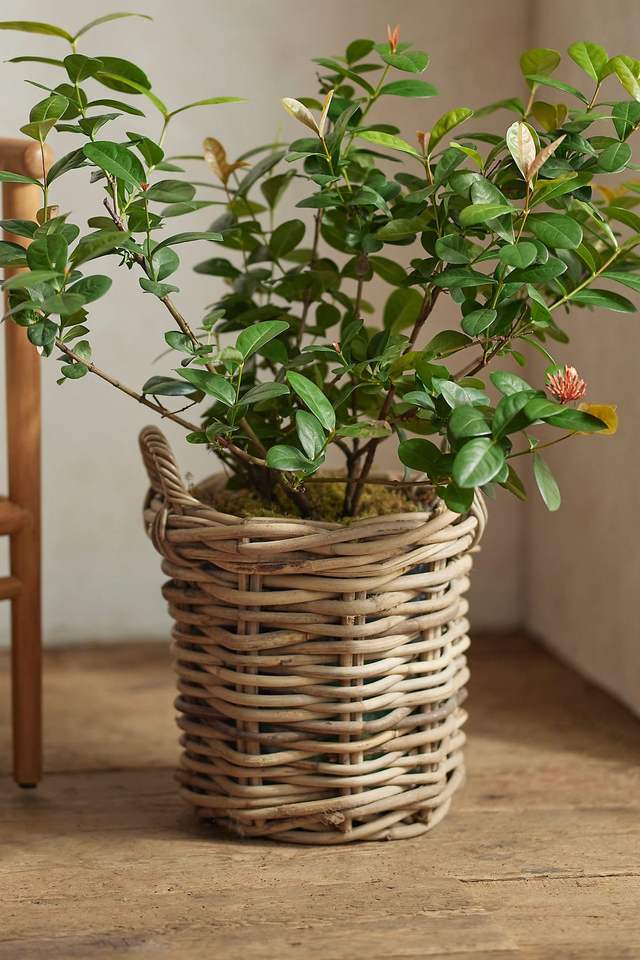Decorative rattan planter centerpiece perfect for dining table entryway corners living rooms or cozy stylish modern apartments