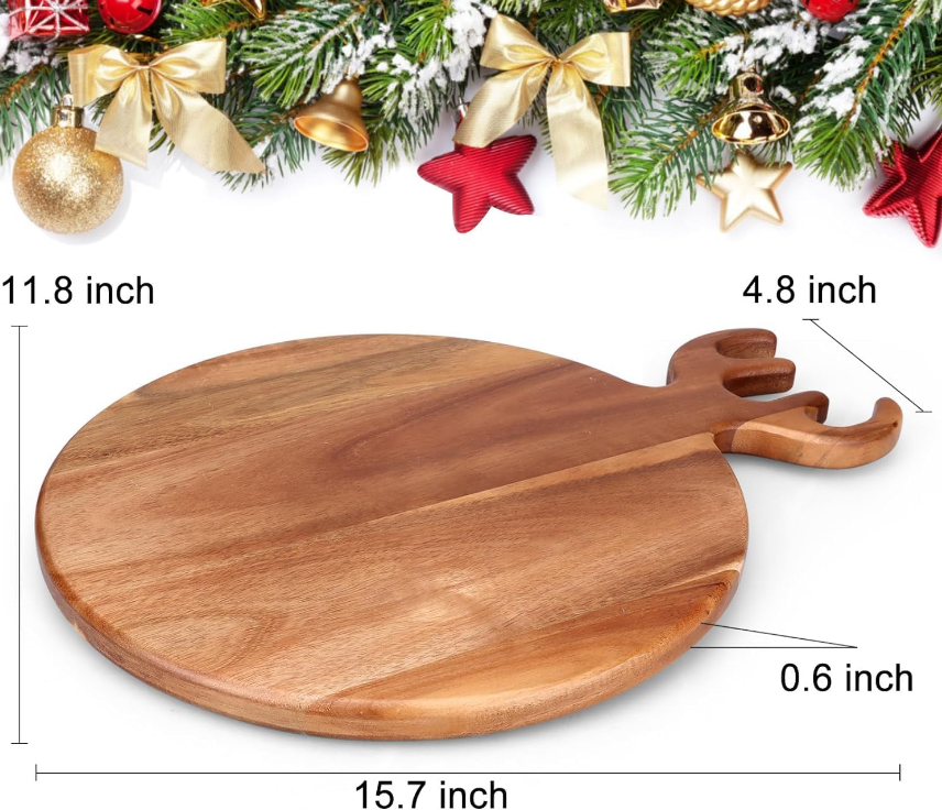 Decorative round Christmas wooden chopping board with handle cheese cutting board home kitchen vegetables fruits chopping board