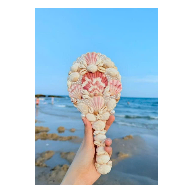 Decorative shell mirror for tropical lovers ideal for beach style cosmetic kits travel accessories and personal grooming tools