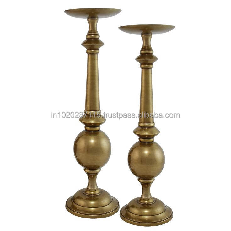 Decorative tall brass candle holder suitable for formal table settings religious festivals and vintage home accents