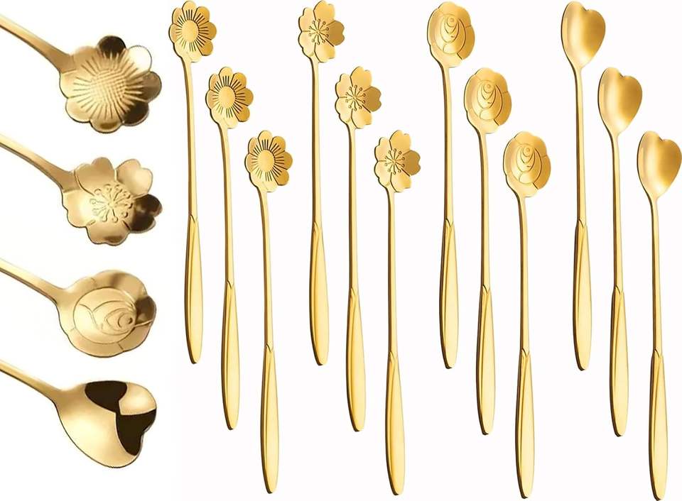 Decorative tea spoons Vintage style spoons Korean style coffee spoon Floral handle spoon Heart shape spoon Long handle