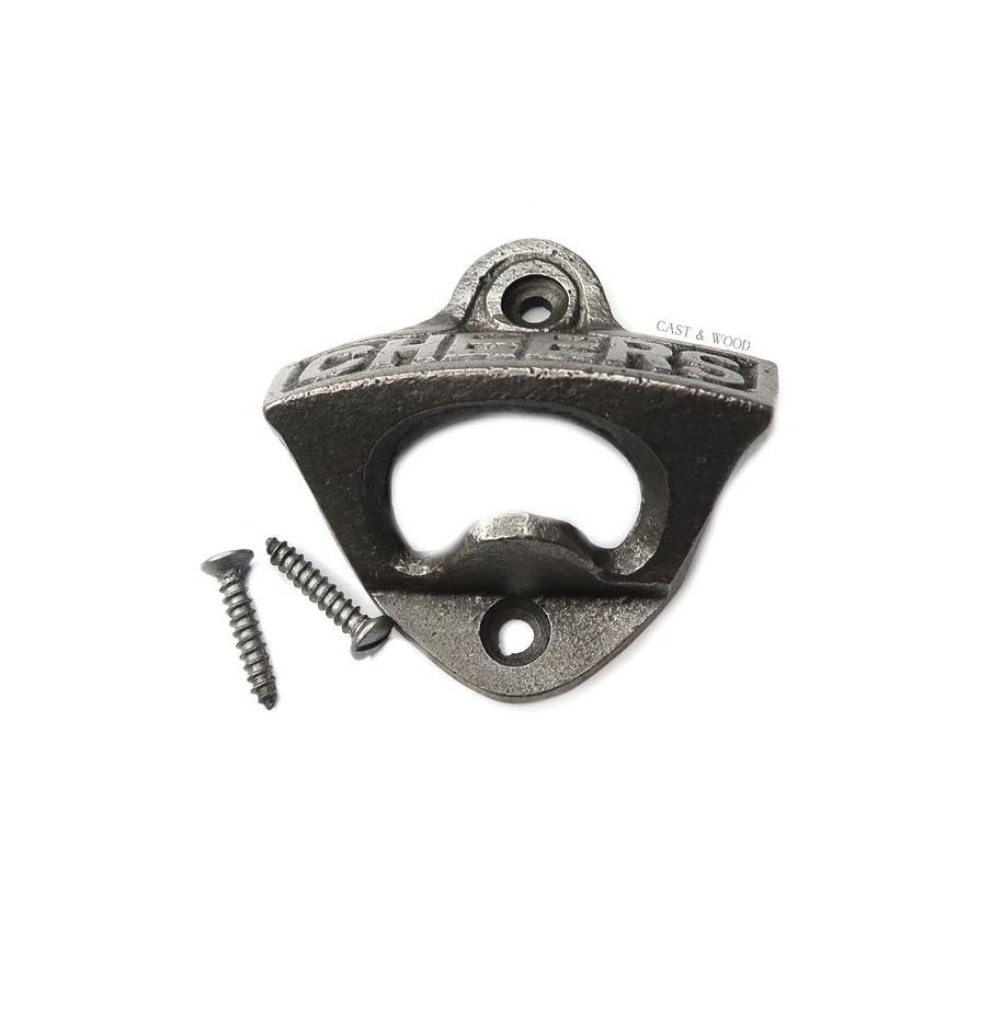 Decorative wall mounted bottle opener with heavy-duty cast iron body perfect for kitchen walls and bar corners