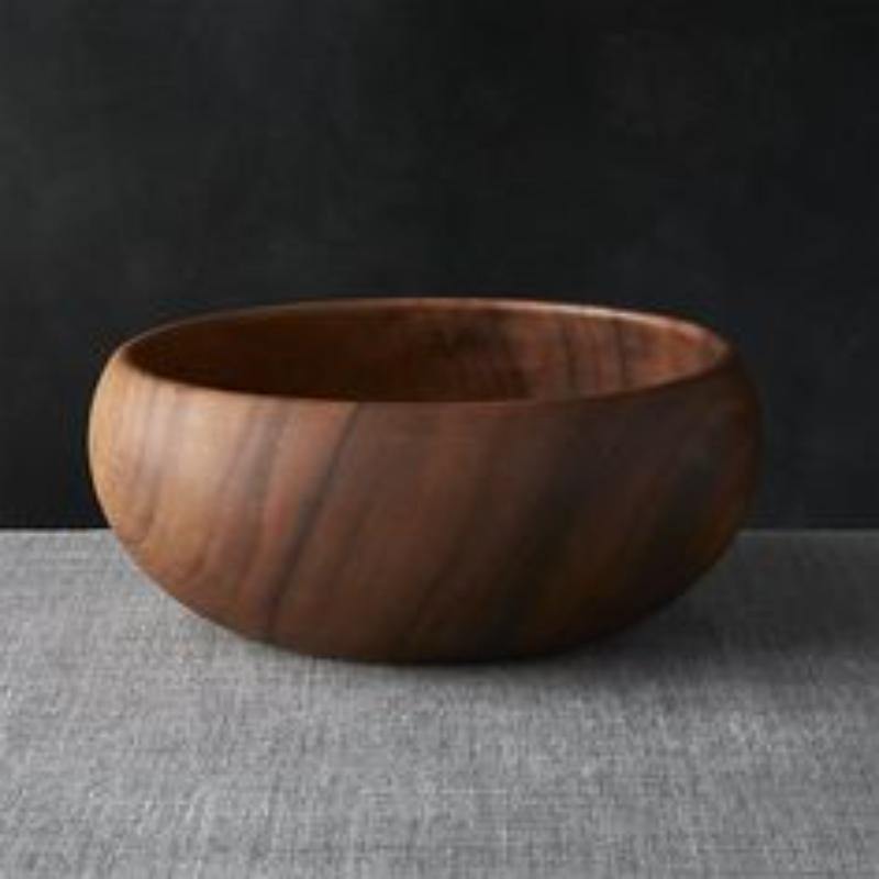 Decorative wooden serving bowl for fruits nuts snacks salads in country style wooden dining room environment