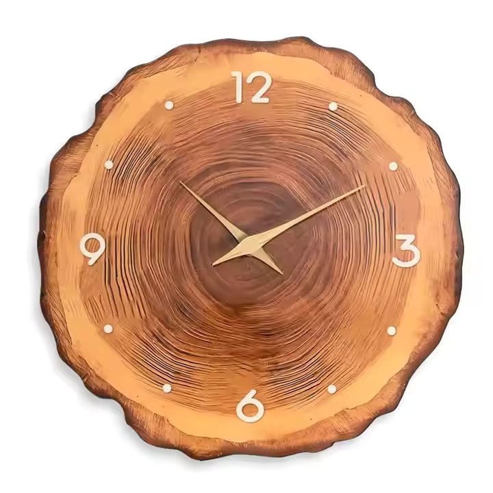 Decorative wooden wall clock crafted with precision from pure wood featuring slim design and aesthetic appearance