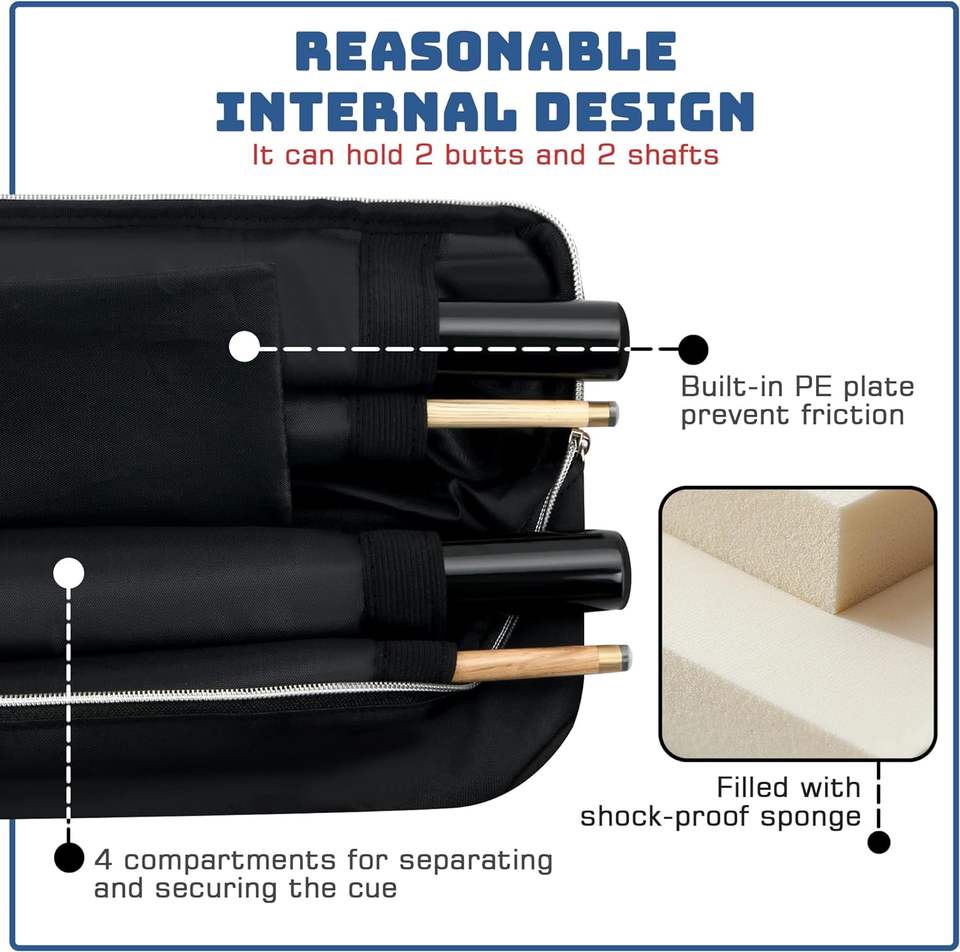 Deenith Carbon Fiber Billiard Pool Snooker Cue Stick with Soft Pool Stick Bag Carry Case 2kg
