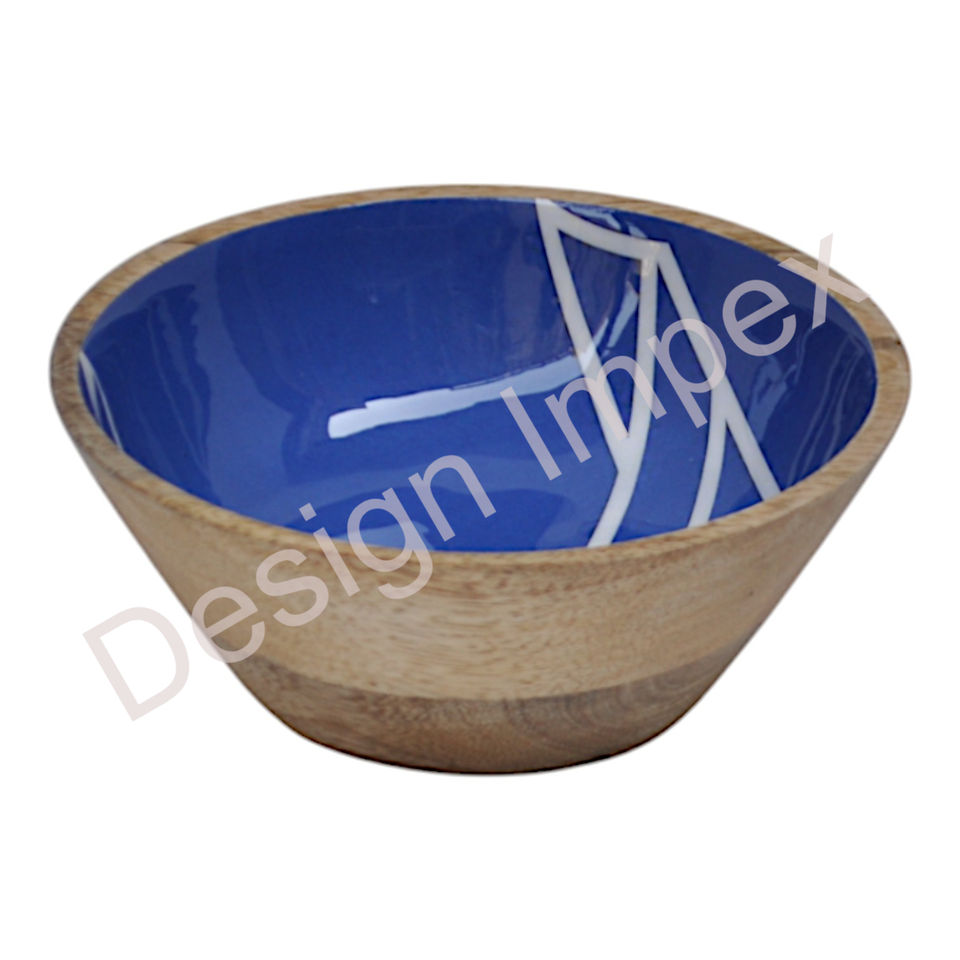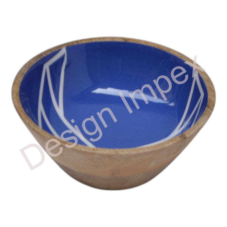 Deep Blue Enamel Bowl Handicrafts Large Carved Fruits Bowl Wooden Decorative Food Serving Bowls Hotel Restaurant Supplies