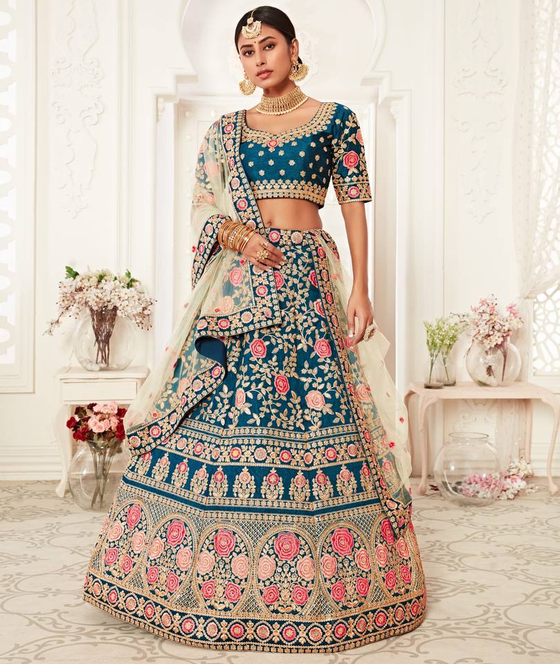 Deep Blue Zari Work Lehenga Choli Heavy Embroidered Designer Dupatta Luxury Handcrafted Indian Pakistani Wedding Bridal Party