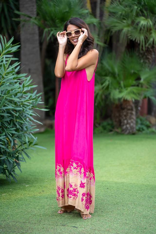 Deep Neck Sleeveless Beachwear Ladies Best Design Floral 2025 Simple Best And Unique Sleeveless Casual Maxi Dress Best Quality