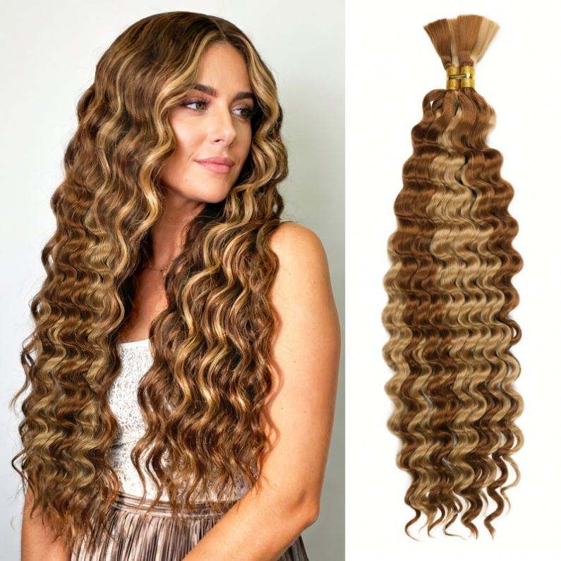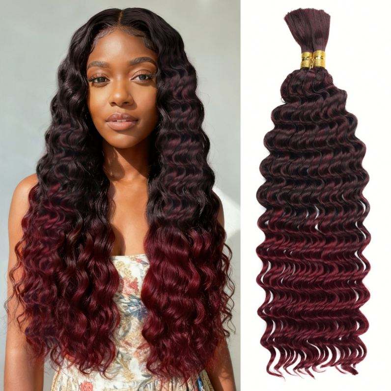 Deep Wave High Temperature Fiber Synthetic Hair Extensions for Braiding Boho Style Bulk Deep Curl
