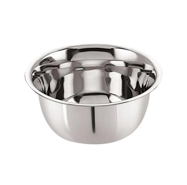 Deep stainless steel serving bowl for mixing ingredients or tossing large salads easily